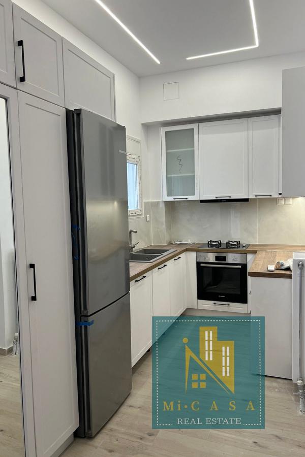 Η κουζίνα είναι μοντέρνα, κατασκευασμένη από ξύλο άριστης ποιότητας, πλήρως επιπλωμένη και πλήρως εξοπλισμένη με ηλεκτρικές συσκευές Bosch τελευταίας γενιάς (κουζίνα, φούρνος, απορροφητήρας, ψυγείο και πλυντήριο πιάτων). Διαθέτει φυσικό αέριο, με κουζίνα διπλής λειτουργίας (ηλεκτρική και αερίου). Η θέρμανση γίνεται με φυσικό αέριο και καλοριφέρ, ενώ υπάρχουν δύο κλιματιστικά (ένα στο σαλόνι και ένα στο υπνοδωμάτιο). Το κτίριο είναι εξωτερικά μονωμένο, εξασφαλίζοντας ιδανική θερμοκρασία χειμώνα–καλοκαίρι. Τα κουφώματα είναι αλουμινίου κορυφαίας ποιότητας με ηλεκτρικά ρολά, ενώ όλα τα φωτιστικά είναι μοντέρνα και χαμηλής κατανάλωσης. Το διαμέρισμα δεν έχει κοινόχρηστα έξοδα και βρίσκεται σε εξαιρετική τοποθεσία, πολύ κοντά σε πανεπιστήμιο, μετρό, στάσεις λεωφορείων και σούπερ μάρκετ (μόλις 5 λεπτά με τα πόδια από μετρό και πανεπιστήμιο). Τιμή πώλησης: 142.000 €.